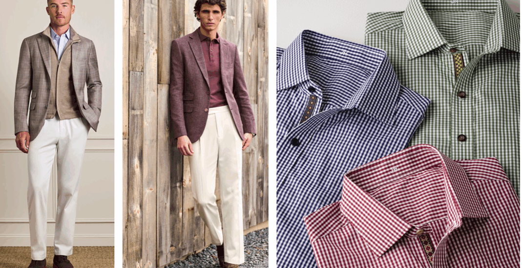 Another item that I was feeling needed a refresh is the suiting vest. Inspired by country gentlemen, the suiting vest as a stylish layer led us to create a new style called the fashion vest. Designed to be worn under a sportscoat or on its own, the men’s tailored vest has a retro vibe of Edwardian office clerks with pocket watches, so we added some pocket details and a lapel to enhance our current suiting vest. The suiting vest itself can be purchased separately, and we did adjust the block to fit better on the shoulder and armhole. Later in the season, we will be able to add the waist and hip adjustment to both styles, too. I love showing the vest worn with a matching sportscoat, but then worn back to a casual pant and/or denim. With the new seasonal linings you can create playful combinations that are at the heart of modern menswear. |